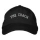 Eine schwarze, einfache, einstellbare Verschlusskappe mit dem (anpassbaren) Text The Coach.
