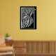 Eine auffallende Schwarz-Weiß-Illustration eines Traums von leuchtend gestreiften Vorhängen Set gegen einen Nachthimmel voller Sterne. Ein unvergessliches Geschenk für Freunde oder Familie. Auch als Mousepad, Karte, Aufkleber, Postkarte, T - Shirt, Tasse erhältlich.