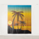 Der tropische Strand mit Palmen und Silhouetten und Sonnenuntergang über dem Ozean. Nutzen Sie die Dekoration oder für einen Abend- oder Strandbesuch. Auch macht einen Spaß selfie Hintergrund.