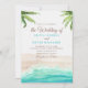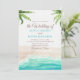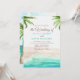 Feiern Sie Ihren besonderen Tag mit unserem exquisiten Watercolor Tropical Beach und Palm Trees Wedding Einladung. Diese Einladung mit einer ruhigen Aquarelldarstellung eines sandigen Küstenabschnitts erweckt die ruhige Schönheit des Meeres. Die sanften Farbtöne von Beige, Türkis, aquamarin und subtil beige sorgen für eine angenehme Atmosphäre für Ihre Hochzeitsfeier. Der Text ist elegant integriert mit einer Mischung aus böhmischen Schriften und minimalistischen Schriftart, perfekt ergänzt das Strandleben. Hinter der Einladung befindet sich eine weitere zauberhafte Szene aus Palmen, die an der Küste schweben und eine Touch tropischen Flairs hinzufügen. Set den Ton für Ihre Hochzeit am Strand mit dieser atemberaubenden Einladung, die rustikalen Charme mit zeitloser Eleganz verbindet.