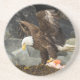 Dekoriert mit einem Bild eines American Bald Eagle (Haliaeetus leucocephalus), das den Schlachtkörper eines Yelloweye Rockfish (Sebastes ruberrimus) mit seinen Talonen an der felsigen Küste der Blackstone Bay in Alaskas Prince William Sound ergreift. von Ted Raynor