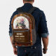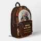 Rucksack mit Vintagem Aquarelldesign mit Büchern und Blume auf Regalen mit braunem Imitat Leder. Sie können Ihre eigenen Texte hinzufügen (optional). Ideal für einen Buchwurm, Bibliothekar oder den Buchclub.