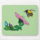 Zwei kleine Blume-Bugspries schlucken sich hinter ihrer Mutter zusammen, als eine große Biene in der Nähe steht. Die Eltern-Blume-Sprite bewacht die Kleinen, indem sie dem Insekt ihre vollständig blühende Blume präsentiert.