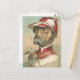 Ein herrliches Vintage-Bild eines Hundes, der als Jockey in Rot-Weiß-Farben gekleidet ist und eine Zigarette raucht. Seine Peitsche wird mit dem Kopf eines Pferdes gekrönt.