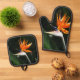 Der Vogel der tropischen Blume Orange Ofenhandschuh & Topflappen-Set