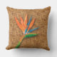Ein exotischer Aquarellvogel aus paradiesischer Blume auf einem geflochtenen Korbgeflecht, das auf diesen stilvollen Sommerkissen im Freien zu sehen ist. PASSENDE Artikel in unserem Geschäft.