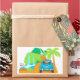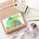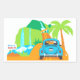 Ein weißer Rechteck Aufkleber mit einer Abbildung von The Road to Hana. Auf der Rückseite eines Vintagen Bug kann man ein Aloha-Nummernschild mit Blick auf die Wasserfälle auf dem Weg zum Ziel benutzen. Eine tropische Palme und ein Straßenschild führen den Reisenden nach Hana. Ein niedlicher Aufkleber für eine hawaiianische Motiveinladung oder Geschenk. Ideal auch für Hochzeit in Urlaubsort!