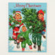 Spaß-Urlaubsplaner mit einem sehr hellen und bunten Retro-Weihnachten zeichnend von glücklichen, fröhlichen Kindern, die den Weihnachtsbaum und die heiligen Äste zurück Zuhause, nachdem sie sie in den Wald geschnitten. Passen Sie die Textbereiche vorne und hinten mit Ihrer eigenen Nachricht oder Ihrem eigenen Namen an. Behalt dir den Zeitplan für diese Feriensaison.
