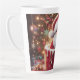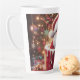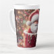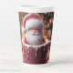 Ein charmantes und skurriles Bild mit einem Miniaturbild des Weihnachtsmanns, eingebettet in eine riesige, dampfende Tasse heißen Kakaos. Die Tasse ist mit zarten Schneeflocken geschmückt und tropft mit cremiger Güte. Der Weihnachtsmann, mit seinen rosigen Wangen und funkelnden Augen, flüchtige Blick aus der Wärme, umgeben von sanften Gläsern der Weihnachtsbeleuchtung und festlichen Dekorationen.