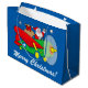Der Weihnachtsmann fliegt ein Flugzeug voller Gesc Große Geschenktüte