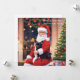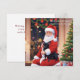 Eine personalisierte Weihnachtskarte mit einem Chihuahua, der auf dem Schoß von Santa sitzt und ihm seine Weihnachtswünsche mitteilt.