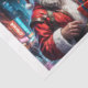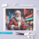 Der Weihnachtsmann in einer modernen Stadt bringt Seidenpapier