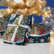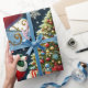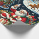 Dieses Verpackungspapier zeichnet sich durch ein lebendiges und festliches Design aus, mit dem der Weihnachtsmann in verschiedenen fröhlichen Aktivitäten dargestellt ist. Zu den Szenen zählen das Rentieren des Weihnachtsmanns, das fröhliche Wachsen, die Lieferung von Geschenken an schneebedeckte Häuser und das Genießen von Milch und Keksen durch einen Weihnachtsbaum. Das sich wiederholende Muster ist das Set gegen einen dunkelblauen Sternenhimmel mit goldenen Akzenten, Schneeflocken und heiligen Sprigs. Die warmen Rottöne, Weiße und Grüntöne schaffen eine klassische Weihnachtsästhetik, die sich perfekt für Geschenke mit Feiertagssaufe eignet.