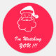 Hier ist ein rot-weißer Aufkleber mit einem Foto des Weihnachtsmanns und den Worten: "Ich beobachte DICH!!!!"