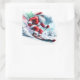 Der Weihnachtsmann Skifahren im Winter Schneeberg Quadratischer Aufkleber