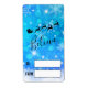 TO / From gift label mit einem festlichen Weihnachtsdesign. Eine schwarze Silhouette des Weihnachtsmannes, der in seinem Schlitten von seinen Rentieren angezogen wird, die über den Himmel fliegen. Glauben Sie, in einem trendigen Skript-Schriftart geschrieben. Der Hintergrund ist ein eisblau frostiges Schneeflockendesign.