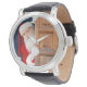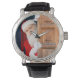 Der Weihnachtsmann versteckt sich hinter einer höl Armbanduhr