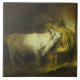 Der weiße Stier im stabilen (Öl auf Leinwand) Fliese