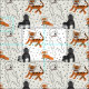 Der Weltraum ist hübsch wild, besonders wenn er von wilden Tieren gefüllt ist, die bei Astronauten spielen. Dieses Muster zeigt Abbildungen eines Tigers, eines Fuchses, eines Gorillas und eines Eisbären, der im Retro-Stil gehalten ist und ein Set aus beige- oder Elfenbeinfarben mit schwarzer Sterngrafik trägt. Mit diesem niedlichen Stoff können Sie sich aus dieser Welt ein Geschenk machen.