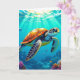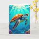 Der 16. Juni ist der Welt-Schildkröten-Tag. An der Vorderseite dieser Karte befindet sich eine hübsche, farbenfrohe Meeresschildkröte, die durch den Ozean mit farbenfrohen Farben und Sonnenstrahlen, die durch das Wasser strahlen, schwimmt. Im Inneren der Karte ist eine Seite mit Fakten gefüllt mit zufälligen Trivien über Meeresschildkröten.