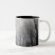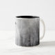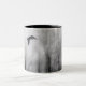 Im Winter fliegt ein einsamer Blackbird durch den Wald, während der Schnee sanft um sie fällt auf diesem hübschen Kaffeekrug.