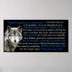 Eine motivierend, lebensverändernde Geschichte, die ein Cherokee-Ältester seinem Enkel erzählte, gepaart mit einer schönen Darstellung eines Wolfs.