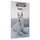 Der zauberhafte Weiße Husky-Hund im Schnee Klemmbrett