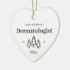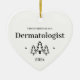 Erste Weihnachten als dermatologisches Herzschmuck. Elegante Porzellan Keramik Urlaubsornamente in Weiß mit schwarzer Schrift. Mit Weihnachtsbäumen und Sternen.