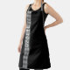 Genießen Sie Ihr Kunsthandwerk oder Ihre Kochtsprojekte in stilvollem Ambiente mit einer zeitgenössischen personalisierten Schürze in Schwarz und Weiß. Sie können Ihren Namen oder Text zur Seite der Schürze hinzufügen. Der Text ist weiß und grau über einem dunkelgrauen und hellgrauen Streifen. Die Erholung der Schürze ist schwarz mit einer anpassbaren Gurtfarbe. Design von Frau_Jade.