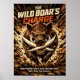 „Der Angriff des Wildschweins“ ist eine rohe, vorwärtsdrängende Illustration, die auf Stärke, Erbe und unerschütterlichem Schwung aufbaut. Das Wildschwein bricht mit entblößten Hauern und starrem Blick aus dem Rahmen, aufgenommen im genauen Moment vor dem Aufprall. Erdiges Braun, tiefe Schatten und explosive Bewegungslinien verleihen dem Stück ein Gefühl von Gewicht und Kraft, während die kühne Typografie den furchtlosen Ton unterstreicht. Der Slogan – „Manche Familien haben ein Wappen. Unsere hat Hauer. Und ein langes, langes Gedächtnis.“ – fügt unter der Aggression eine Schicht von Erbe und Stolz hinzu.