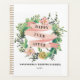Dieser Hochzeitsplaner verfügt über einen dekorativen Kakteen Kakteen Kakteen mit einem Kakteen aus Kakteen, das eine rosa Blüte aufweist. In der Mitte steht "Happy ever after" in einem schwarzen Serif-Schriftart. Sie können mit Ihren Namen und Jahr personalisieren. Die Farben sind grün, rosa, weiß und schwarz.