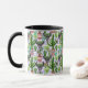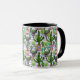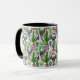 Das dominierende Merkmal der Tasse ist ihr Kaktusmuster, das in lebhaften und kontrastfarbenen Tönen dargestellt ist. Das Muster deckt die gesamte Außenfläche der Tasse ab und erscheint als sich wiederholendes Motiv um den Umfang herum.