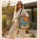 Bring a touch of the desert to your wardrobe with this vibrant tote bag featuring cacti, a bold sun, and a geometric border. The colorful design and desert landscape make it a perfect accessory for those who love southwestern and boho styles.