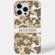 Customize this multi-hued brown desert camouflage iPhone 15 pro case with your name in a trendy modern CAP font in brown on cream. It's masculine and perfect for your favorite military, hunting, country or outdoorsman!