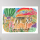 Eine Wüstencoyote, mit einem süßen Lächeln, stoppt beim Laufen durch die farbenprächtige blühende Wüste und hält unter einem schönen Regenbogen an. Vielleicht hatte er einen schönen Traum im Kopf. Das hier wurde mit Aquarellfarbe gestrichen. Wählen Sie aus mehreren Poster.