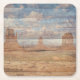 Coasters decorative tabletop protectors for beverage drinking cups and glassware printed with a Desert Landscape Sandstone Buttes And Heavenly Sky mixed media graphic art design illustration by TheFabricSeal at Zazzle #ZazzleMade https://www.zazzle.com/store/thefabricseal