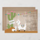 Eine Babydusche-Einladung, die eine Illustration eines Mama-Lamas und eines Babyllamas, umgeben von Kakteen, enthält. Personalisieren Sie den Text.