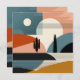 Eine abstrakte Landschaft in einer Wüstenlandschaft mit Linien und Formen in Brauntönen, Orange, Türkis, Beige, Bräune und Schwarz.