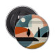 Eine abstrakte Landschaft in einer Wüstenlandschaft mit Linien und Formen in Brauntönen, Orange, Türkis, Beige, Bräune und Schwarz.