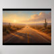 Desert road with a single car far away poster