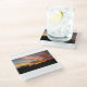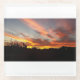 Schöner Sonnenuntergang in der Wüste mit einer Silhouette von Pflanze und Häusern.