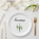 Wüste Südwestpapierplatte, mit einem grünen Saguaro Kakteen Design auf weißem Hintergrund. Mit der schwarzen, anpassbaren Typografie-Schrift können Sie Ihren eigenen Text hinzufügen. Ideal, um eine Touch Arizona zu Ihrem Party Zubehör hinzuzufügen.