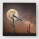 Deserts | Saguaro Cactus With Birds in Desert Quadratische Wanduhr