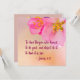 Eine quadratische, inspirierende Flachkarte zeigt das Bild der schönen rosa Sakura-Blume vor dem Hintergrund der weichen orangen oder hellen Korallen. Der Vers aus der World English Bible (die im öffentlichen Bereich ist): "Für ihn, der also weiß, Gutes zu tun, und tut es nicht, für ihn ist es Sünde. - James 4:17" auf der Vorderseite. Ein farblich anpassbares Textsymbol "Gott segne Sie" und ein anpassbarer Vorlagentext auf der Rückseite. Sie können das Bild ändern und den Vorlagentext ändern oder löschen. Falls Sie gewollt haben, das Design auf ein anderes Produkt zu übertragen, klicken Sie auf den blauen Button "Personalisieren" oder "Design bearbeiten", um die Bilder und Texte an die Größe und Form der ausgewählten Produkte anzupassen, um einen bunten Hintergrund hinzuzufügen, Bilder und alles zu ändern. Sei einfach kreativ und genieße die Karte.