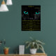 Die vollständige Desiderata von Max Ehrmann: Gehe ruhig inmitten des Rauschens und der Eile... Mit einer schwarzen Katze mit grünem Auge, die Sie anschaut. Die Verse haben seit den 1920er Jahren junge Erwachsene inspiriert und sind heute so beliebt wie eh und je. Es wurde als Geschenk von liebevollen Eltern, Großeltern, Pateneltern und Tanten und Onkeln gegeben, als essenzielle Lebensweisheit, seit es geschrieben wurde. Sie haben herausgefunden, dass es eine der wenigen Möglichkeiten ist, diese Weisheit zu überwinden, die Hormone nicht verzeihen, und die kommende Generation durch ihre rebellischen Jahre zu unterstützen.