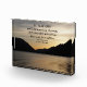 Akryllischer Foto zur Ausstellung, der das landschaftliche Foto eines dramatischen Sesununtergangs und der Silhouetten der Berge zeigt, sowie inspirierende Verse aus dem beliebten Gedicht Desiderata, geschrieben von Max Ehrmann. Macht ein nachdenkliches Geschenk für Familie und Freunde!