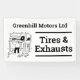 Reifengeschäft. Garage Banner. Wartung, Reifen, Abgase und Reparatur von Fahrzeugen. Schwarz und Weiß.
