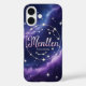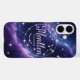 Mystische Galaxie Gehäuse Design, Tiefsee und lila Raum mit Sternen, leuchtendes zodiakisches Konstellationsüberlagern, eleganter Drehbuch-Schriftart mit Namenspersonalisierung, Träumen und kosmischem Stil"