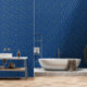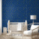 Gelbes Fünf-Punkte-Sterne-Tapete. Der dunkelblaue Hintergrund kann an jedes Dekor angepasst werden.