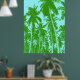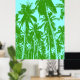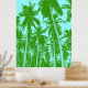 Kühne und beeindruckende Grafik-abstrakte Palmen posterisierten Design. Grün und Blau.